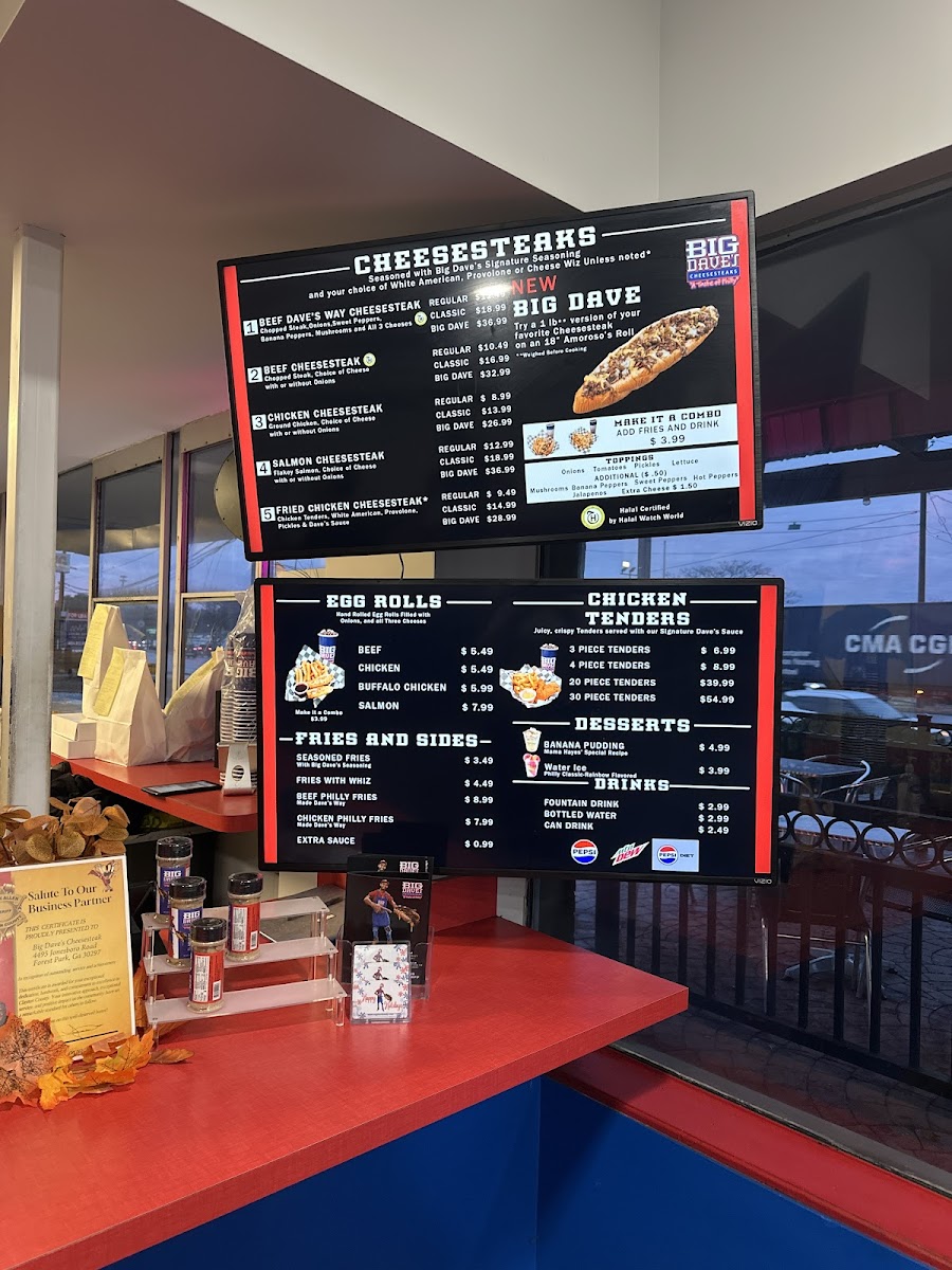 Welcome to Big Dave's Cheesesteaks, the ultimate destination for cheesesteak lovers in Forest Park, GA. Located at 4495 Jonesboro Rd, this eatery specializes in crafting mouthwatering cheesesteaks that are sure to tantalize your taste buds. The menu features a variety of options, including Regular, Classic, and Big Dave versions of both beef and salmon cheesesteaks. Each sandwich comes on authentic Amoroso rolls, loaded with chopped steak or flakey salmon paired with your choice of cheese—and you can add onions for extra flavor.
